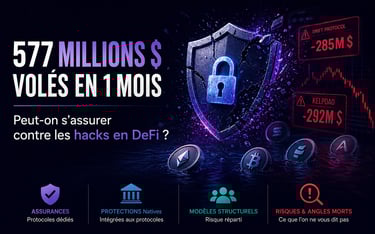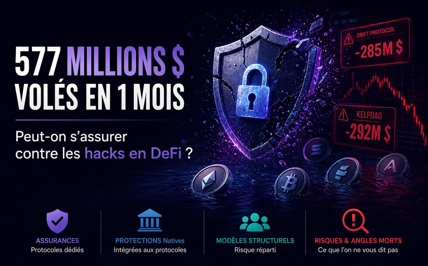 577 millions de dollars volés en un mois. Et si on vous avait dit qu'il existait des assurances pour ça ? Elles existent, depuis 2019 pour certaines mais l'ensemble du marché de l'assurance DeFi couvre aujourd'hui moins de 1% de la TVL totale de l'écosystème et c'est pourtant un secteur que la plupart des utilisateurs en DeFi souhaitent voir émerger malgré la méfiance qu'ont semée des années de sinistres contestés, de polices truffées d'exclusions et de capacités de couverture sans commune mesure avec les montants réellement en jeu. J'ai passé en revue les trois grandes familles de protection qui existent aujourd'hui dans la DeFi : les assurances décentralisées tierces, les mécanismes de sécurité intégrés directement dans les protocoles et les modèles de tranching du risque entre investisseurs. Trois approches très différentes, avec chacune leurs angles morts, et une question centrale : auraient-elles pu protéger les victimes des hacks de ce mois ?