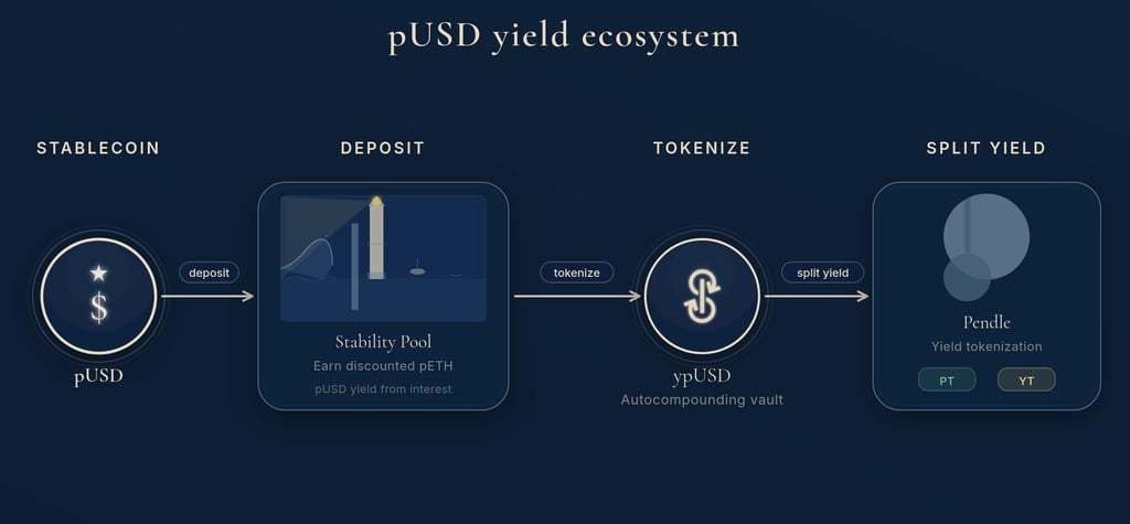 C'est ici que le système devient véritablement fascinant pour les utilisateurs DeFi avancés cherchant des opportunités sophistiquées : ces vaults ERC-4626 comme ypUSD ou spUSD peuvent être directement intégrés à Pendle, protocole spécialisé dans la tokenisation et le trading de yield.