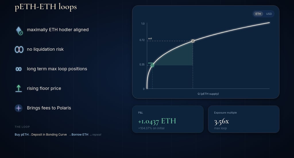 Ce mécanisme porte le nom d'ETH Loops dans la documentation technique de Polaris, et il constitue un outil extrêmement puissant pour les "ETH bulls" convaincus qui souhaitent maximiser leur exposition à l'ETH sans pour autant accepter le risque permanent et stressant de liquidation qu'on trouve sur les plateformes de lending traditionnelles.
