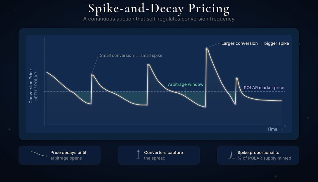 Il existe deux façons d'acquérir du POLAR : l'acheter sur le marché secondaire ou le minter (créer) via le mécanisme de conversion. Il est crucial de comprendre que la conversion est l'unique source d'émission du jeton : on ne crée du nouveau POLAR qu'en brûlant du pETH. C'est un pur mécanisme d'arbitrage : quand le prix de mint est inférieur au prix du marché, les bots brûlent du pETH pour créer du POLAR et capturer le profit.